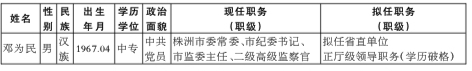为了加强对干部选拔工作的监督,提高识别和任用干部的准确程度,现对省委常委会会议研究决定的下列拟任人选进行任前公示: