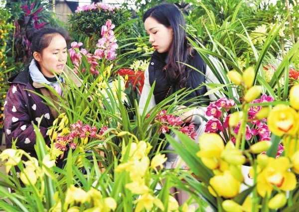 1月9日,市民在乾州农贸花卉市场选购花卉。春节将至,吉首市城区花卉市场逐渐升温,不少市民选购各种鲜花、绿植来扮靓生活,迎接龙年春节。 姚方 摄