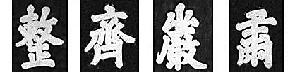 沱江书院虽为县级书院,然问世后便胸怀丕志,见贤思齐。书院迁建黄湖山隈后,山长即派人前往长沙岳麓书院,将岳麓书院院训“整齐严肃”四字拓回,然后用花岗岩复制摹刻分列于四块石碑,立于院内,借此作为沱江书院院训。“整齐严肃”,四个擘窠大字分别勒石,一一独立,字字显明,犹武士出列,端庄雄浑,气宇轩昂,据悉系乾隆二十三年(1758)岳麓书院山长欧阳正焕亲题书写。后来,这四个大字又被嵌入重修后的沱江书院面墙之上,人们探访,便似有礼宾仪男迎面而来,有一种庄重迎宾的仪式感,细看而又“岿然不动”,仿佛又有一种初心可怀的诉说。