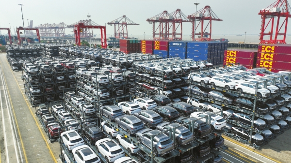 繁忙的港口,火热的经济信号。仅在海通国际汽车码头,平均每天就有约3000辆国产汽车从这里出发,驶向全球100多个国家和地区。