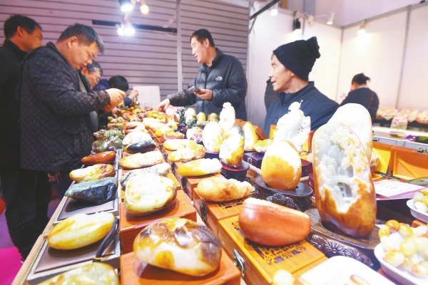 1月12日,市民在参观选购玉雕摆件。当天,2024长沙国际珠宝玉石暨矿物宝石展在湖南国际会展中心开展,展会吸引了来自全球的500家珠宝商参展,数万件矿物宝石化石集体亮相。