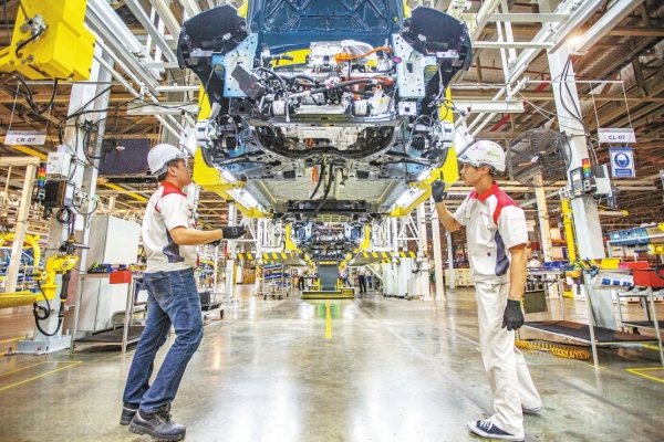 图为当日,工人在位于泰国罗勇的长城新能源汽车制造基地生产车间内工作。