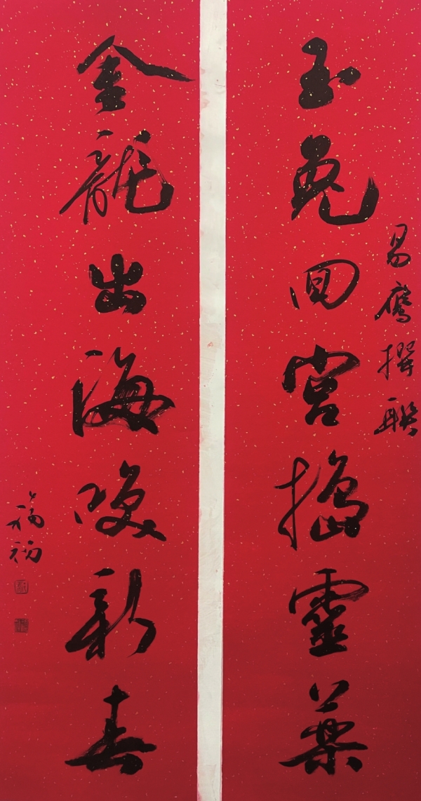 玉兔回宫捣灵药;金龙出海唤新春。易鹰撰联 鄢福初书