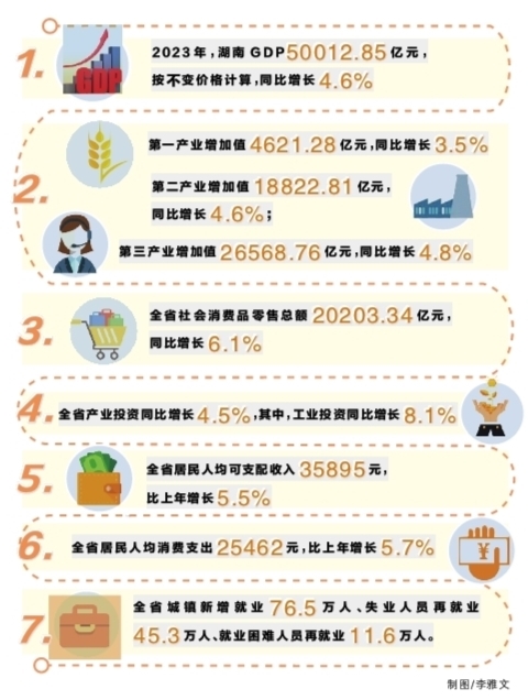 1月19日,在省政府新闻发布会上,省统计局、国家统计局湖南调查总队联合发布2023年湖南省经济社会发展情况和民生调查数据。2023年湖南省地区生产总值突破5万亿元大关,达到50012.85亿元,按不变价格计算,同比增长4.6%。