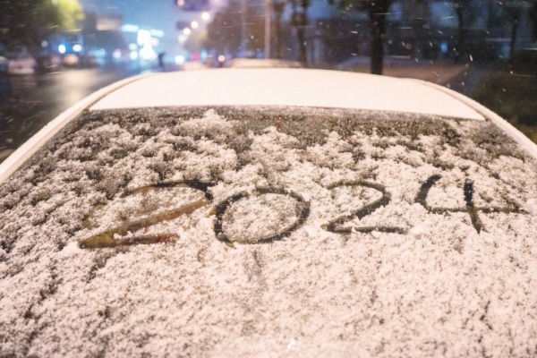 21日晚,停在长沙街头的一辆小车上覆盖着积雪。