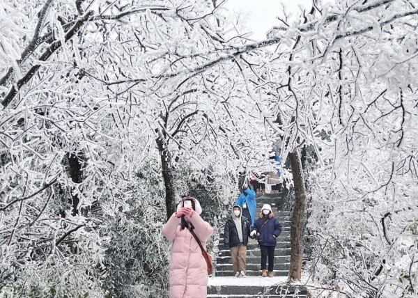 张家界,海拔1500多米的天门山冰花盛开,漫山铺银。