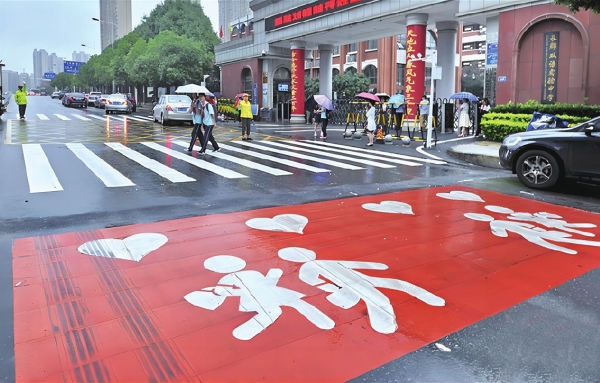 “爱心+儿童”的图案、“红底+白杠”的地面标识、斑马线与车辆停止线之间设置隔离区……行走在星城大街小巷,人们常常与“爱心斑马线”不期而遇。自长沙首条爱心斑马线在长郡双语实验中学门前亮相以来,目前全市已建成200多条“爱心斑马线”,为儿童出行安全保驾护航。