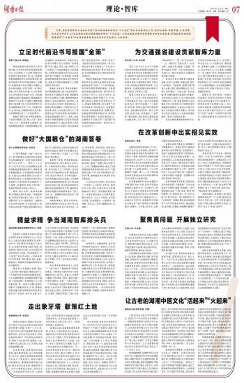 中医药学是中国古代科学的瑰宝,也是打开中华文明宝库的钥匙之一。湖南有着深厚的中医药历史文化底蕴和独特资源,如马王堆汉墓医书、汉代名医张仲景在长沙当太守的坐堂行医遗址等,都是国家乃至世界的中医药文化宝贵遗产。习近平总书记强调,“让收藏在禁宫里的文物、陈列在广阔大地上的遗产、书写在古籍里的文字都活起来”。让古老厚重的湖南中医文化焕发时代光彩,要在以下几个方面下功夫。