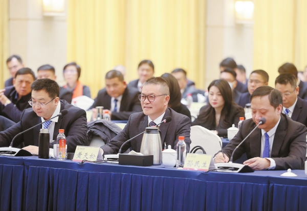 1月25日上午,黄天松委员(前排中)在联组会上围绕促进我省中医药发展提出建议。