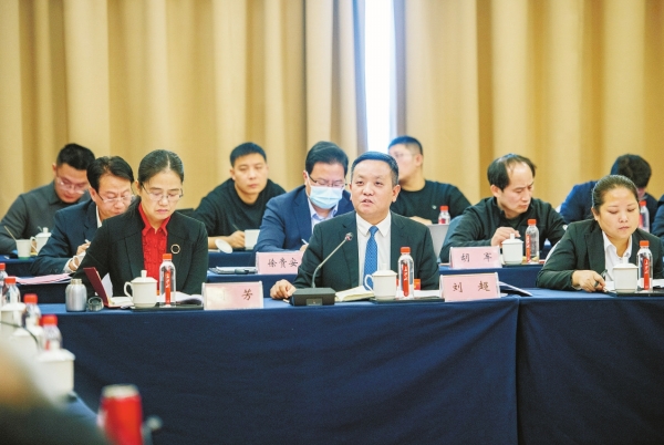 1月25日,张家界市代表团刘超代表(中)就加大对农村公路提质改造和安防设施建设资金投入建言。 本版照片均为湖南日报全媒体记者 李健 摄