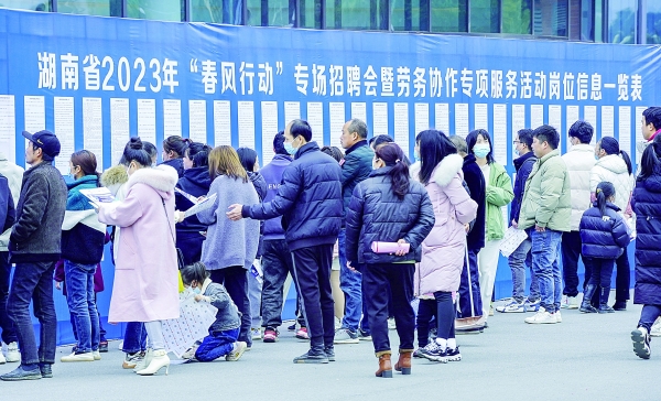 元旦假期前后,全省各地陆续举行高校毕业生就业服务周专场招聘会。在常德的一场招聘会上,44家企业向武陵区2024届高校毕业生、离校未就业高校毕业生、农民工、返乡人员等群体提供了500多个岗位。