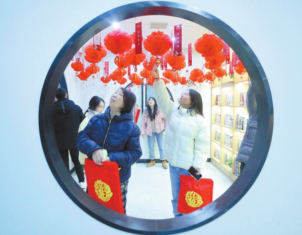 1月26日,衡阳市雁峰区先锋社区,市民在猜灯谜。当天,该区文联组织文艺志愿者开展“写春联送福进社区”活动,现场免费为市民书写春联和“福”字,举办有奖猜灯谜活动,营造浓浓的节日氛围。曹正平 摄(湖南图片库)