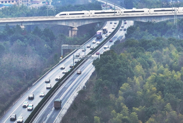 1月29日,平(平江县)洞(洞口县)高速益阳段车流如织。春运开始以来,湖南高速公路车流量攀升,G60沪昆高速、G56杭瑞高速、G5513长张高速等车流量逐渐增加。春运期间预计全省高速公路出入口总流量14063万辆,日均351.5万辆,较2023年同期增长10%,较平日增长60%。 湖南日报全媒体记者 童迪 摄