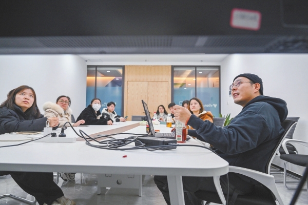 1月16日晚,长沙市开福区马栏山视谷中心,学员在学习“短视频创作运营”夜校课程。 |