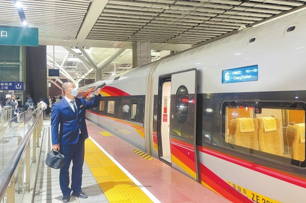 “派班员,随车机械师肖柯云报到。”2月2日20时50分,广铁集团长沙动车所随车机械师肖柯云到乘务队派班室报到。
