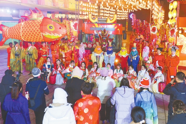 2月8日,游客在长沙世界之窗逛庙会。当晚,“新春九龙大庙会”在该园热闹上演。