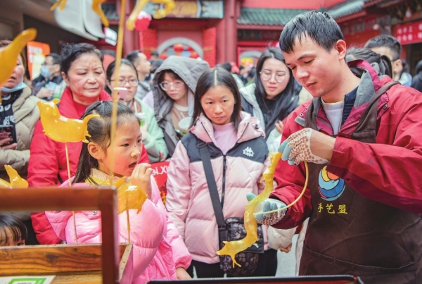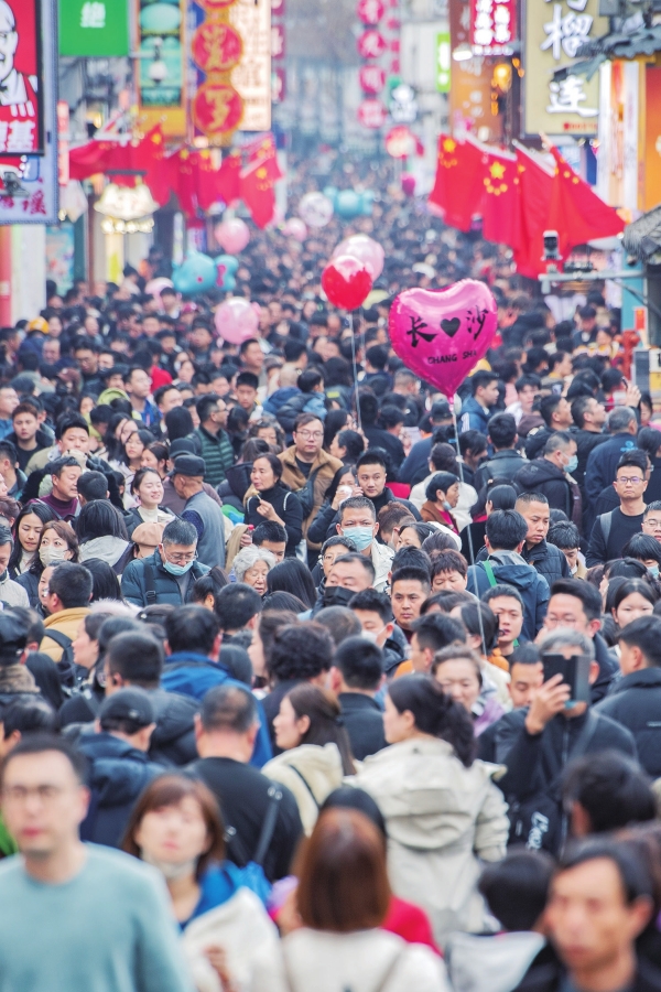 因为春晚,这个春节,长沙这座“网红”城市持续火爆“出圈”。在黄兴路,大批外地游客纷至沓来,感受城市繁华与活力;在坡子街,火宫殿张灯结彩,人们逛庙会、看非遗、品美食,好不热闹;在化龙池,大家漫步青石板街道,感受长沙老街巷;在湖南博物院,市民聆听历史的回音,体验别样年味……春晚“湖南元素”频现,更让湖南文旅“上大分”,吸引游客慕名前来,据省文化和旅游厅公布的数据,假期前三天,全省累计接待游客5554.64万人次。