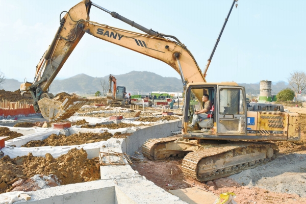 2月19日,洪江市安江杂交水稻博物馆建设工地,工人抢抓晴好天气加紧施工。该项目占地37096平方米,建筑面积15041平方米,主体建筑按“喜看稻菽千重浪,而今禾下好乘凉”的理念设计。