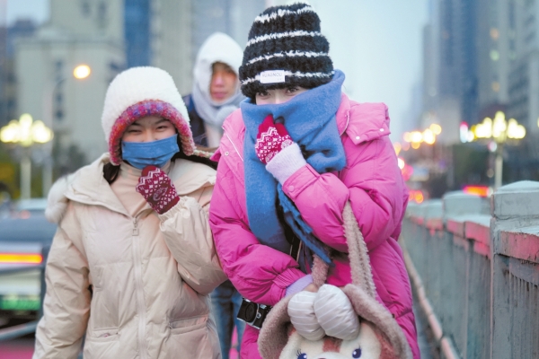 2月21日,长沙橘子洲大桥,市民“全副武装”出行。当天,受冷空气持续影响,湖南启动低温雨雪冰冻灾害Ⅳ级应急响应,不少市民和游客重新披上厚厚的羽绒服、棉衣出行。