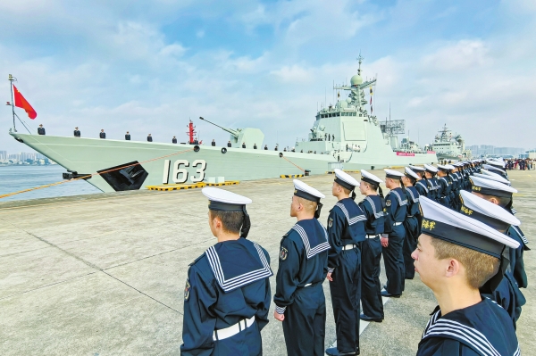2月21日,中国海军第46批护航编队从广东湛江某军港解缆起航,赴亚丁湾、索马里海域接替第45批护航编队执行护航任务。