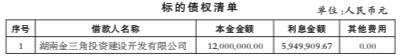 本次拟处置的资产为湖南金三角投资建设开发有限公司债权资产(以下简称“标的债权”)。截至2023年11月1日(处置基准日),标的债权总额合计1,794.99万元,其中:本金余额1,200.00万元,利息594.99万元,其他费用为0。