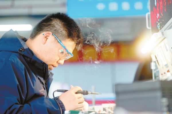 3月2日,选手在进行灯带焊接训练。当天,第47届世界技能大赛光电技术项目国家集训队在衡阳技师学院开展第四阶段集训。本阶段训练为期4天,采用理论与实践相结合的训练方式进行。世界技能大赛是最高层级的世界性职业技能赛事,每两年举办一次。