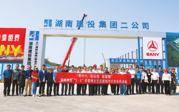 3月4日,湖南文艺志愿工作者一行来到全国首个由自由贸易试验区和自由贸易试验港合作共建的产业园——东方市湘琼先进制造业共建产业园开展采风创作。大家参观了产业园施工现场,并且在工地上举办书画创作交流笔会,艺术家为园区的企业和工友们创作近百幅书画作品。《武陵清韵》《南山春意》《醉春》《万山红遍》等美术作品,《海纳百川》《科技强企军工铸魂》《追光而行》等书法作品,像春天的花朵为产业园装点文化的盛景。