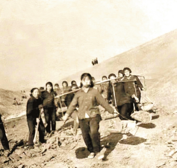 刚去时,虽已是秋天,但是暑热还未褪去。白天,姑娘们穿着单衣,一双赤脚,两条辫子随着肩头的担子一下一下摆动,有说有笑地穿梭在工地上。