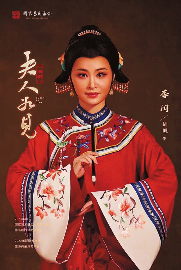 “夫人如见”四字,是谭嗣同写给妻子李闰书信的抬头。见字如面,在家书抵万金的时代,两地分居的思念、嘱托、倾诉都在书信的字里行间。湘剧《夫人如见》,讲述了“巾帼完人”李闰从闺阁女子走向精神解放和人格独立的心路历程,讴歌了心忧天下、敢为人先的湖湘儿女的精神品性。本剧由湖南省、长沙市湘剧保护传承中心的三位国家一级演员周帆、邵展寰、罗志勇担任主演,自2023年首演以来深受观众好评,该剧系2023年度国家艺术基金资助项目,入选第十八届中国戏剧节,并获评“优秀剧目”。