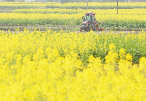 3月12日,衡东县杨林镇,村民驾驶农机在翻耕稻田。随着气温不断回升,春耕春播进入关键时节,当地村民抢抓农时,一派人勤春早的繁忙景象。曹正平 单亮 摄影报道(湖南图片库)
