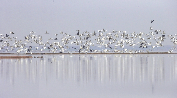 湖南东洞庭湖,白琵鹭、苍鹭、大白鹭、斑嘴鸭翔集,蔚为壮观。2023—2024年度洞庭湖越冬水鸟同步调查,共记录到水鸟80种35.79万只。其中,白鹤等国家一级保护鸟类7种448只,小天鹅等国家二级保护鸟类12种2.77万只,小天鹅占国家重点保护鸟类总数41%。 |