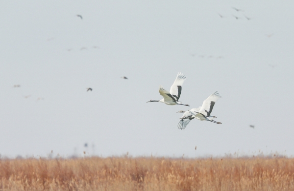 黄河三角洲是东亚-澳大利西亚和环西太平洋两条候鸟迁徙通道的重要节点,每年有数以百万计的候鸟经过或在此繁衍。近几年来,志愿者先后跟踪湖南洞庭湖和江西鄱阳湖的小天鹅、小白额雁、灰雁、白枕鹤和白鹤到此,目睹了环渤海迁徙通道的变迁。