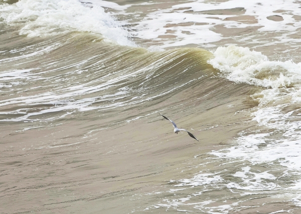 3月7日,江苏省连云港市,红嘴鸥搏击海浪。红嘴鸥繁殖于天山西部地区及我国东北部的湿地,在我国东部、南部的湖泊、河流及沿海地带越冬。 |