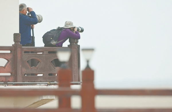 3月4日,江西省九江市沙湖山,志愿者拍摄候鸟。 |