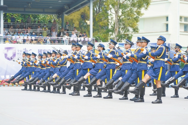 2023年4月15日,香港惩教学院举行国家安全教育活动,图为仪仗队进行中式步操表演。(资料照片)