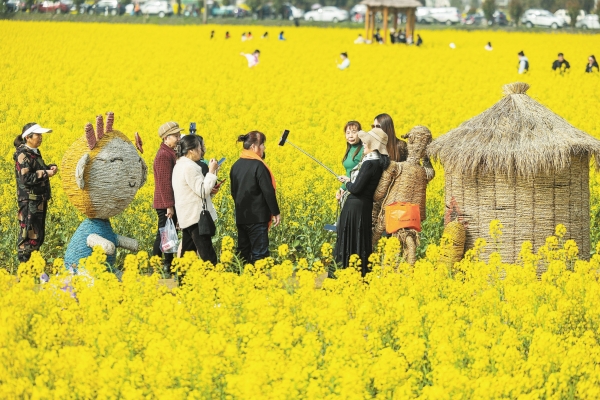 截至3月20日,近1个月的油菜花期,保民村吸引游客超30万人次。当地村民、合作社、农产品企业设置展厅、展台、售卖摊位124个,销售当地生态稻米、食用油、非遗食品、水果等,带动销售额600多万元。