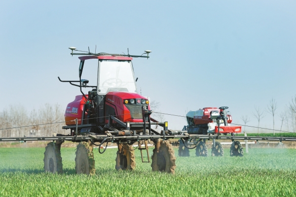 图为3月19日,自走式无人植保机在无人农场进行除草作业。本版照片均为新华社发