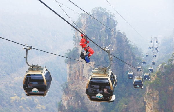 3月22日,张家界国家森林公园组织相关力量在天子山索道联合开展高空救援模拟演练,检验索道安全性能及突发事件的应急处置水平,提高旅游接待安全保障能力。