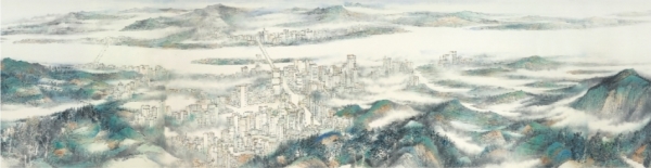 湖南的山水,既有奇秀风光,又有深厚文化底蕴;既有历史赋予湖南的人文情怀,又有人民安居乐业的美好景象。“大美潇湘”大型系列中国山水画创作工程,组织湖南老中青三代70余位优秀山水画家,通过考察、写生、创作,推出了《湘江北去》《大江交响》《天下洞庭》《资润江山》《沅水奔流韵三湘》《澧水泱泱》《多彩浏阳河》7幅大型系列青绿山水长卷以及37件单幅美术作品。作品展现了湖南“一江一湖三山四水”的恢宏气象,突破“潇湘山水”这一传统美学意象,引现代城市建筑群、水利交通设施、新时代乡村、革命伟人故居、代表性文化景观等入画,展现出一方文化热土、革命热土上人类顺应自然规律的智慧创造,绘就一幅人与自然和谐共生的现代画卷。
