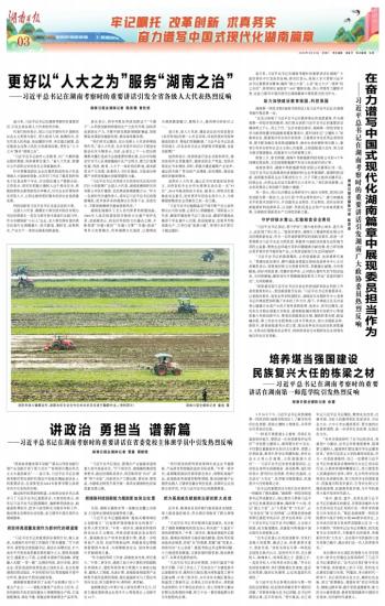 第03版:牢记嘱托 改革创新 求真务实 奋力谱写中国式现代化湖南篇章