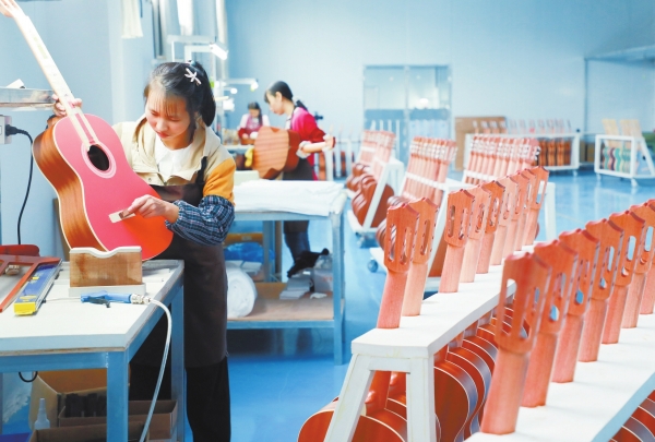 “标准化、智能化生产,带来生产效率翻倍,产品质量跃升。”公司副总经理康卫平深有感触地说,公司月产中高档民谣吉他3000把,多项关键性能指标达到业界领先水平,产品畅销澳大利亚、新加坡、俄罗斯等国家。