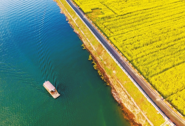 3月24日,双峰县杏子铺镇涟水村,游客乘船在涟水河上游玩。近年来,杏子铺镇在水府庙水库库区沿线各村大力发展生态农业,促进农旅融合发展。 李建新 朱道辉 摄影报道(湖南图片库)