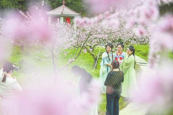 3月26日,资兴市汤溪镇坪子村。该镇种植的2600多亩黄桃近日花开正盛,吸引游客纷至沓来,享受美好春光。近年,汤溪镇依托茶叶特色小镇和桃花花海资源,推动乡村农旅融合发展。湖南日报全媒体记者 郭立亮 通讯员 黄欣 摄影报道