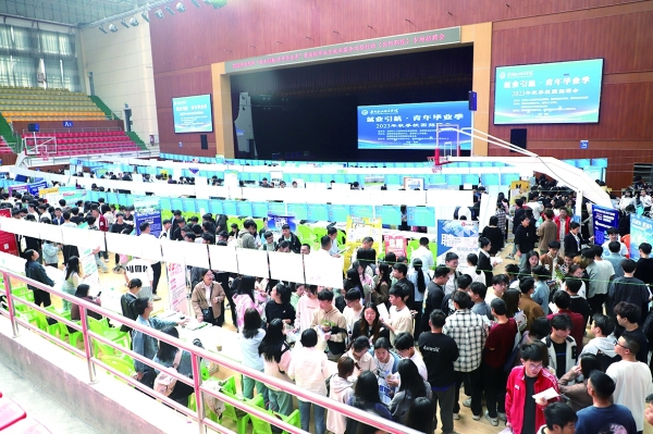 随着毕业季临近,岳阳一年一度的春季校园招聘会正如火如荼地展开。