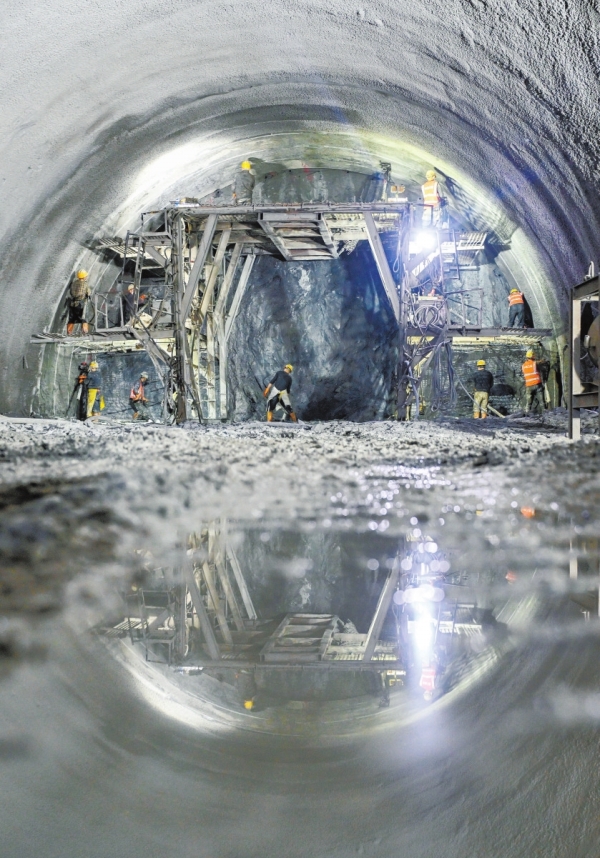 上图为当天工人在隧道内施工。