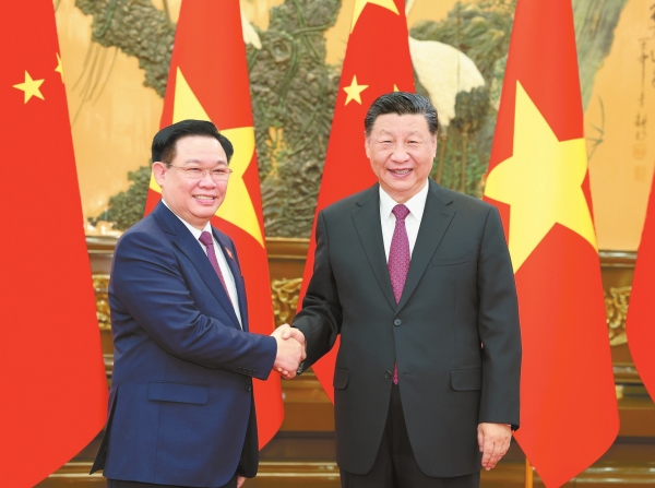 4月8日,国家主席习近平在北京人民大会堂会见越南国会主席王庭惠。新华社 发