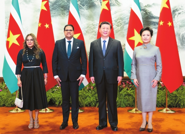 习近平强调,中方高度赞赏苏方始终坚定对华友好,在涉及中国核心利益和重大关切问题上坚定支持中方。中方也坚定支持苏方维护国家主权独立、自主选择符合本国国情的发展道路。中方愿同苏方继续相互理解、相互支持,保持高层交往,密切各部门、立法机构、政党间友好交往,加强治国理政经验交流。中方欢迎更多苏里南优质特色产品进入中国市场,愿同苏方深化共建“一带一路”合作,加强发展战略对接,拓展贸易、投资、农业、能源、矿业、基础设施建设、数字经济等领域合作,给两国人民带来更多实实在在的福祉。苏里南是加勒比地区华侨华人最多的国家之一,也是西半球首个把中国春节作为法定假日的国家。双方要继续鼓励人文交流,便利人员往来,共同建设好孔子学院。加强地方合作,不断丰富两国交流合作内涵。中方愿同苏里南等发展中国家一道,加强多边协调和团结合作,维护共同利益,实现共同发展,推动构建人类命运共同体。中方重视发展同加勒比国家关系,支持加勒比国家谋求繁荣发展、增进民众福祉,愿继续为地区国家经济社会发展提供力所能及的帮助。