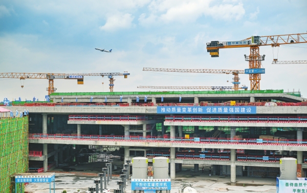 4月19日,建设中的长沙机场GTC项目主体工程。目前,由中建五局等单位承建的长沙机场改扩建工程综合交通枢纽(GTC)主体结构工程即将全面完工。该项目集机场、高铁、磁浮、公路、地铁等多种出行方式于一体,步行5分钟即可轻松换乘,被誉为全国机场“换乘之王”。