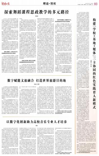 湖南悠久的历史文化、厚重的革命文化,是高校思政课的教材宝库。对湖南来讲,应通过挖掘红色资源、演好红色故事、数字科技赋能等多种方式打造红色舞蹈课程,提升思政教育实效,激励青年学生发扬老一辈革命家的崇高品德和精神风范,赓续红色血脉,勇当奋进新征程的实践者、奋进者、搏击者。