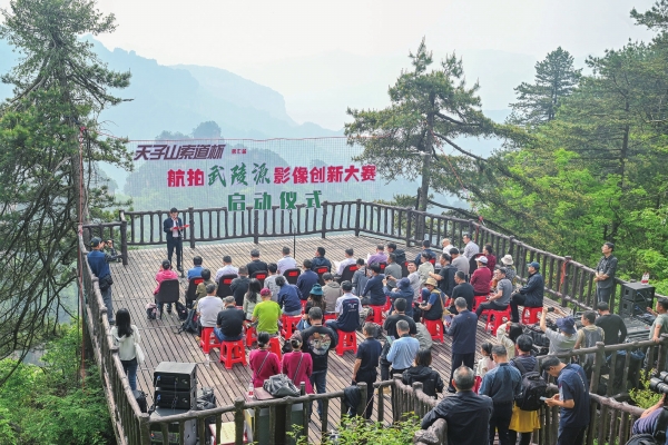 湖南日报4月27日讯(全媒体记者 郭立亮 通讯员 吴勇兵)飞“阅”武陵源,纵览峰林美。4月27日,由湖南日报社、张家界市武陵源区人民政府、张家界武陵源风景名胜区和国家森林公园管理局共同主办的“天子山索道杯”第七届航拍武陵源影像创新大赛在张家界国家森林公园天子山景区正式启动,面向国内外摄影师征稿。
